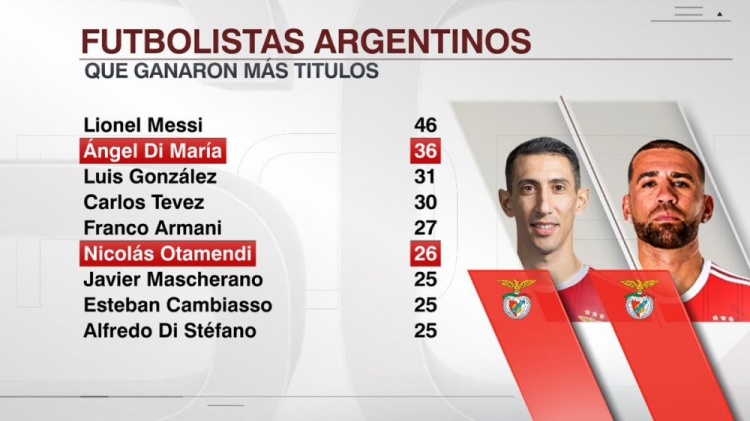 據(jù)ESPN統(tǒng)計(jì),迪馬利亞職業(yè)生涯至今奪得36個(gè)冠軍,阿根廷球員中僅少于梅西,奧塔門迪則獲得第26冠。
